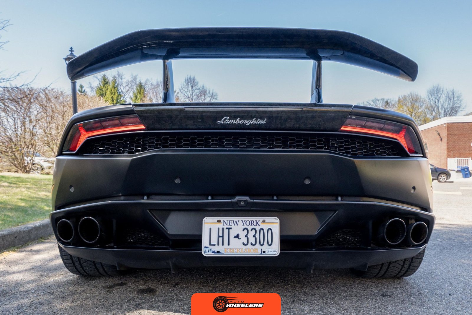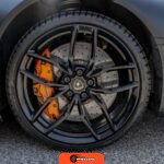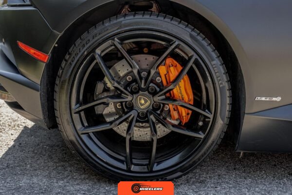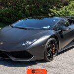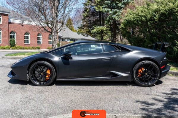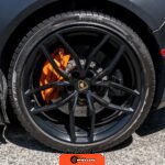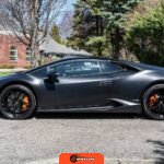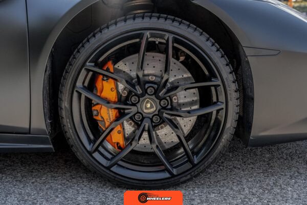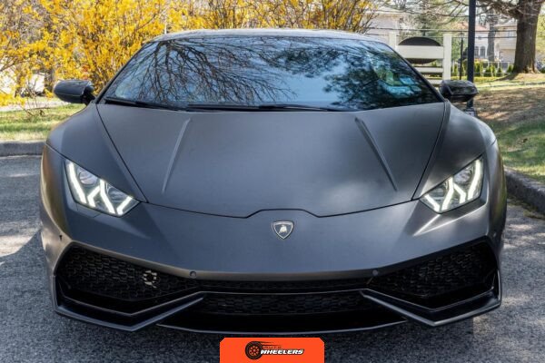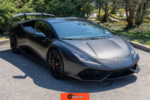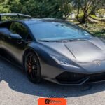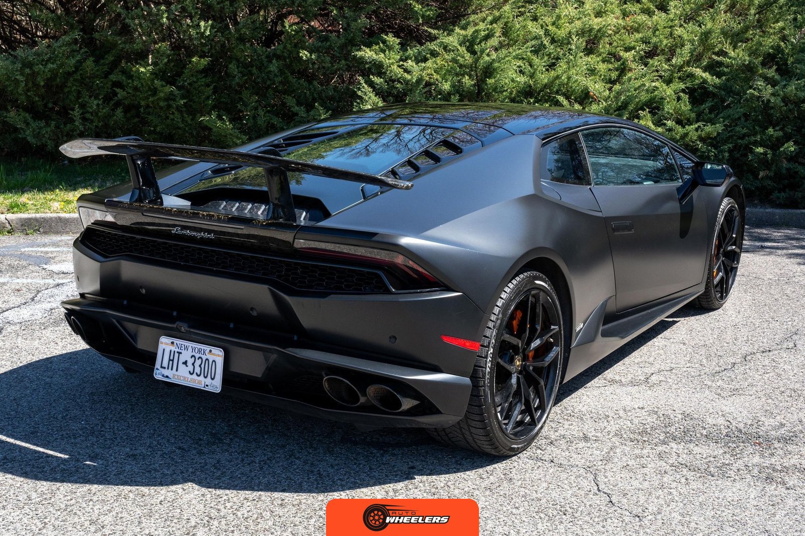 The Lamborghini Huracan LP610-4 debuted in 2015 as the successor to the Gallardo, representing the entry point into Lamborghini’s lineup while maintaining the brand’s signature mid-engine V10 configuration. The LP610-4 designation denotes the longitudinale posteriore (longitudinal rear) engine placement, 610 metric horsepower, and all-wheel-drive system. This example features the original Grigio Lynx paint beneath a matte black vinyl wrap applied by a previous owner, along with black-finished wheels and orange-painted brake calipers.