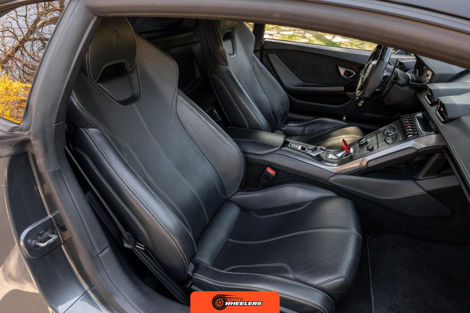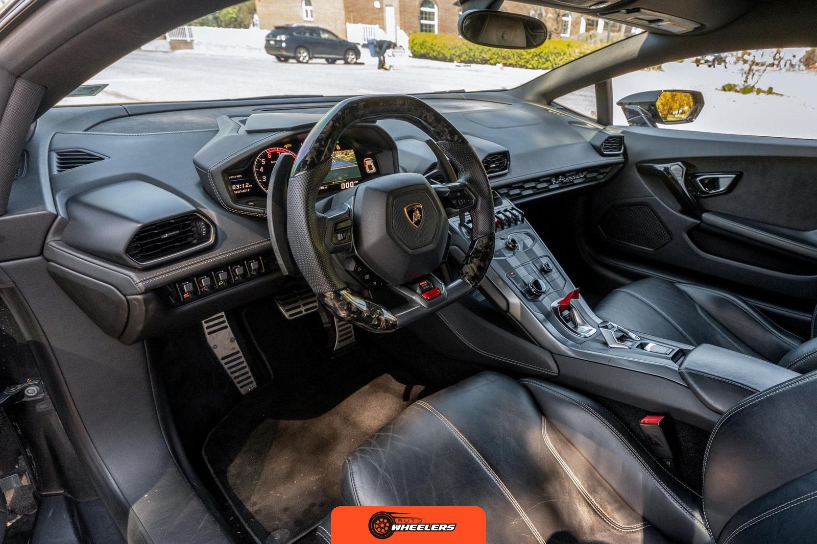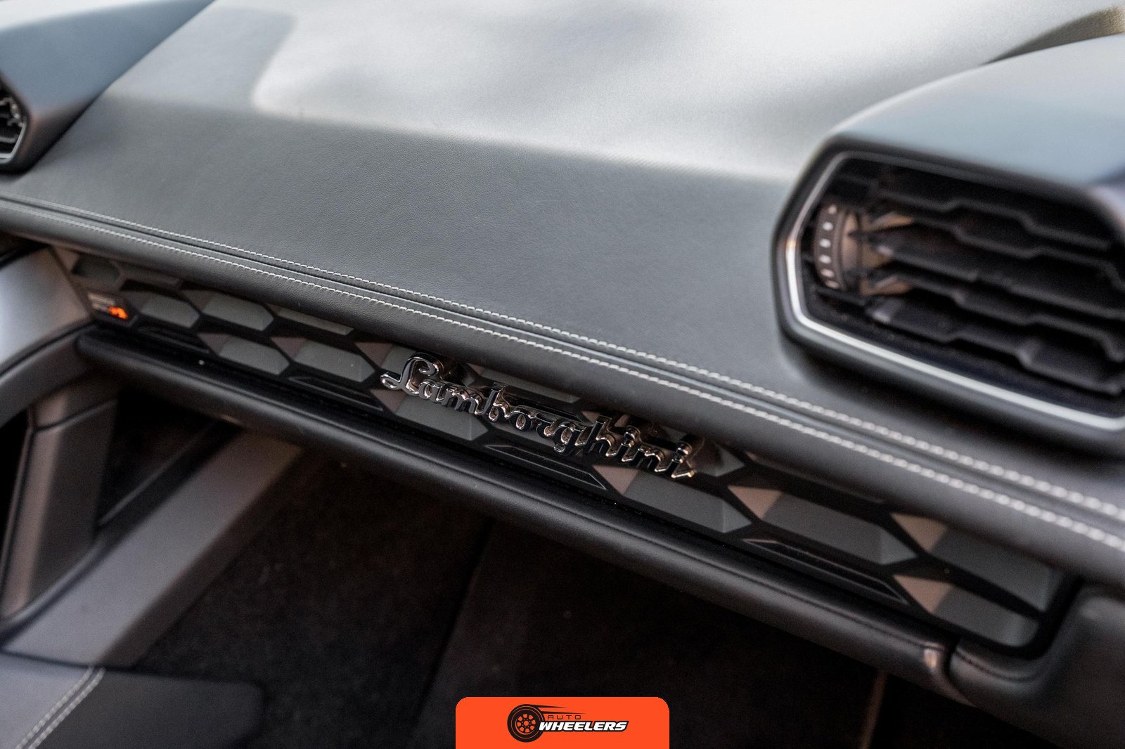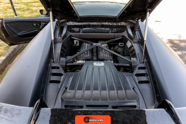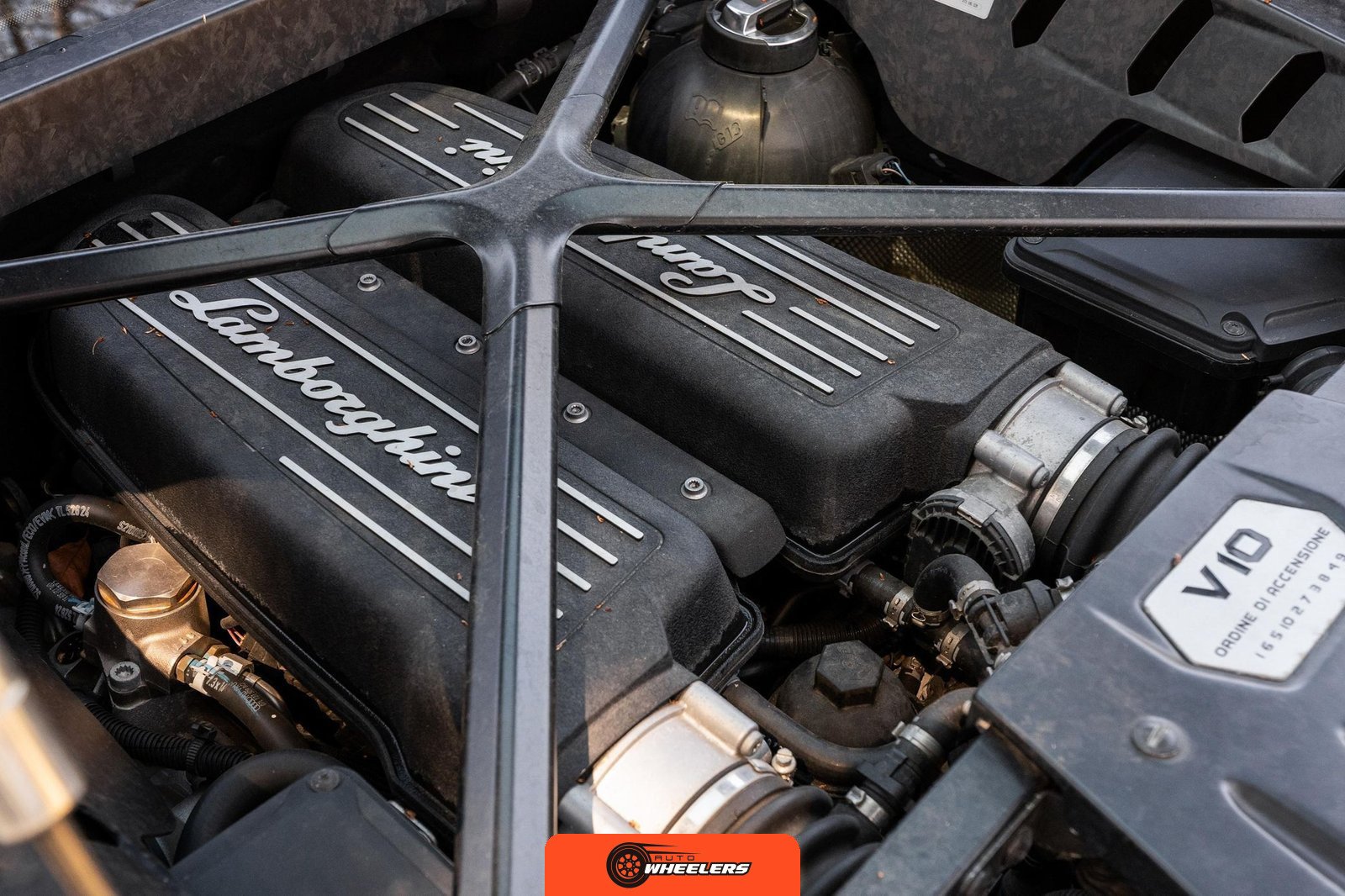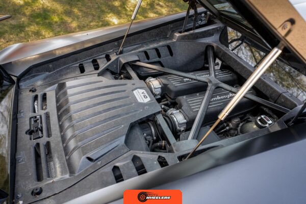 Power is supplied by a naturally-aspirated 5.2-liter V10 engine producing 610 horsepower and 412 lb-ft of torque. The engine is mated to a 7-speed dual-clutch automatic transmission distributing power to all four wheels through Lamborghini’s permanent all-wheel-drive system. This powertrain configuration provides the performance characteristics associated with the Huracan platform while maintaining all-weather traction capability.