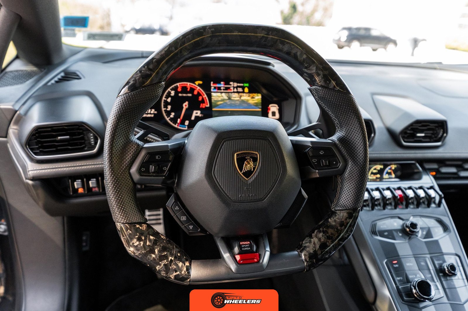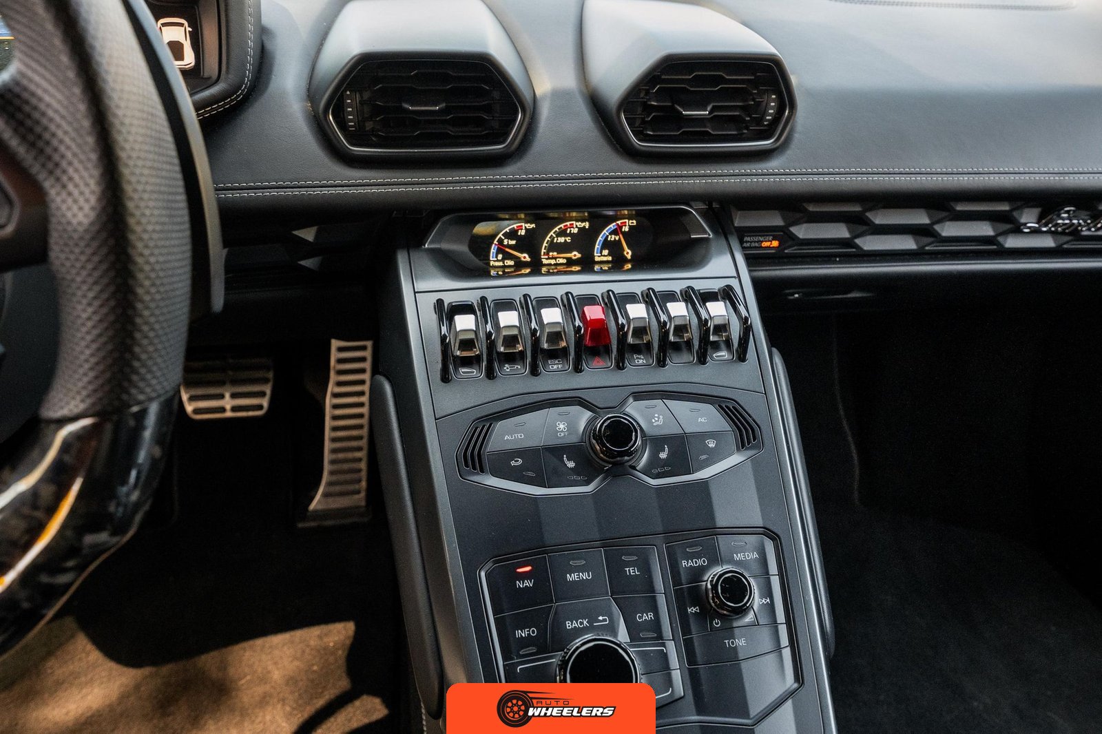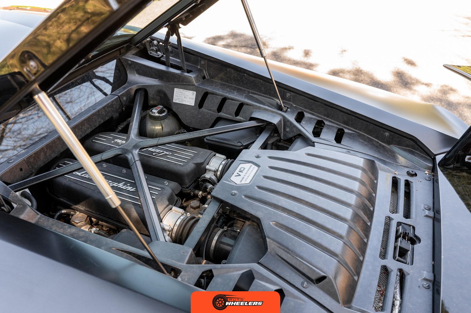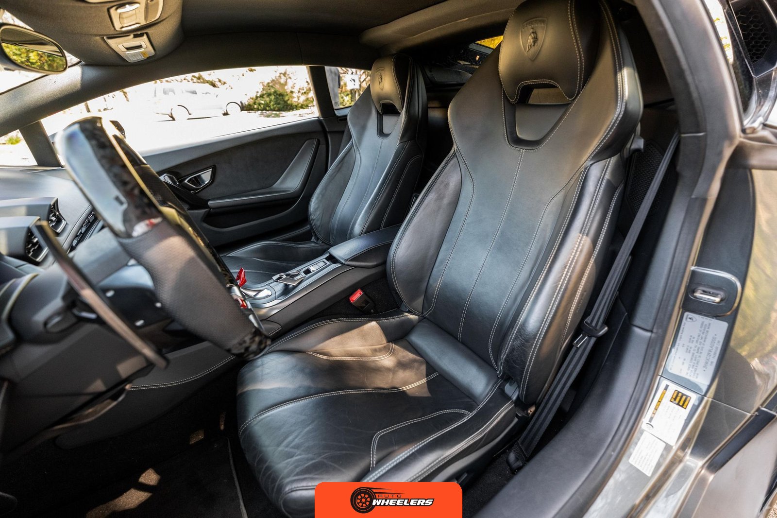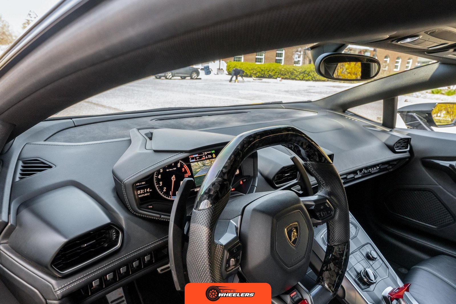 Power is supplied by a naturally-aspirated 5.2-liter V10 engine producing 610 horsepower and 412 lb-ft of torque. The engine is mated to a 7-speed dual-clutch automatic transmission distributing power to all four wheels through Lamborghini’s permanent all-wheel-drive system. This powertrain configuration provides the performance characteristics associated with the Huracan platform while maintaining all-weather traction capability.