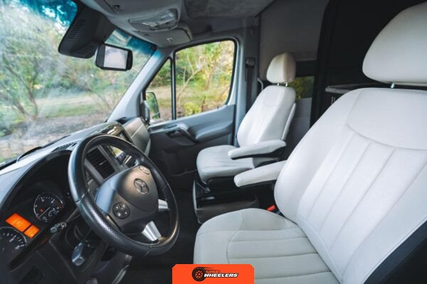Power comes from Mercedes-Benz’s proven 3.0-liter turbodiesel V6 engine, producing 188 horsepower and 325 lb-ft of torque, paired with a 5-speed automatic transmission driving the rear wheels. The vehicle includes Crosswind Assist technology for enhanced highway stability and an Air Ride rear air suspension system for improved ride quality when loaded.