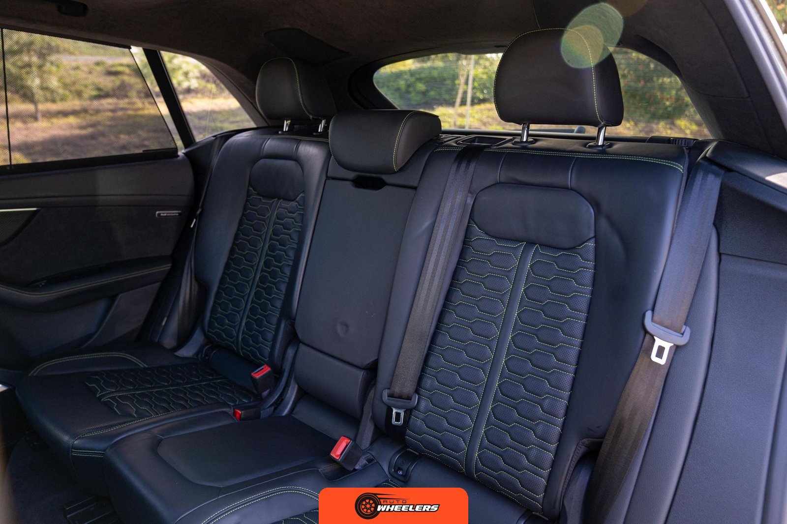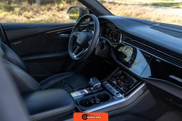 The powertrain consists of a twin-turbocharged 4.0-liter V8 engine augmented by a 48-volt mild hybrid system. Total output is rated at 591 horsepower and 590 lb-ft of torque. Power is routed through an 8-speed automatic transmission to all four wheels via Audi’s Quattro all-wheel drive system. The RS Q8 is equipped with a sport rear differential, sport adaptive air suspension, and all-wheel steering, which together enhance handling dynamics and stability. The vehicle’s performance capabilities are further supported by a robust braking system and performance-oriented chassis tuning.