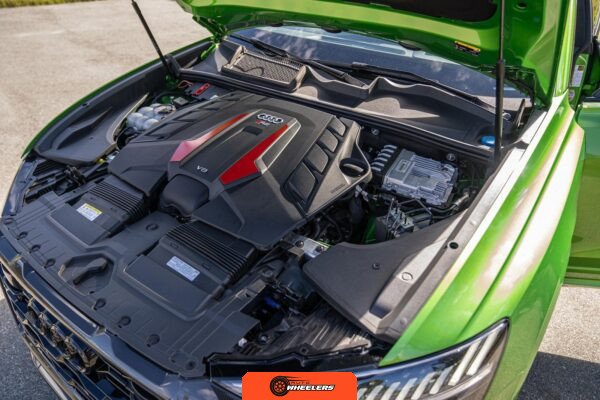 Power is provided by a twin-turbocharged 4.0-liter V8 engine paired with a 48-volt mild hybrid system, rated at 591 horsepower and 590 lb-ft of torque. Output is delivered to all four wheels through an 8-speed automatic transmission and Audi’s Quattro all-wheel drive system.
