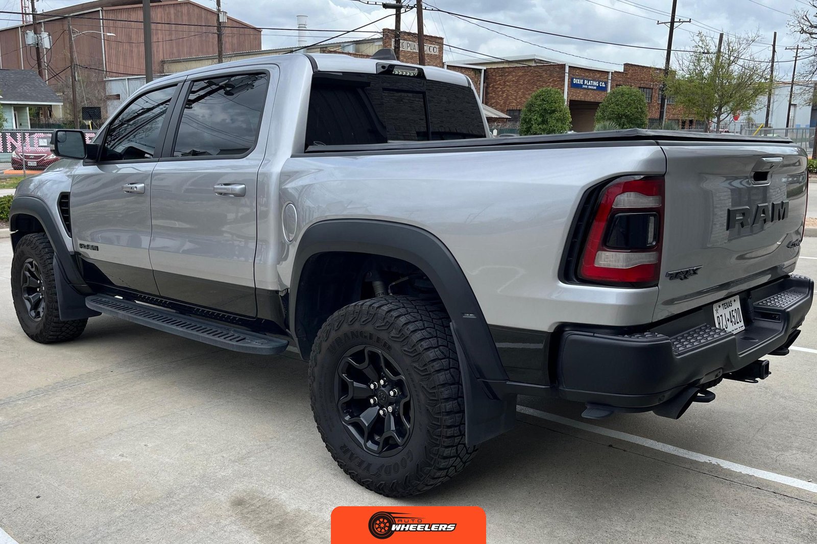 This 2022 example presents in Billet Silver Metallic with lower two-tone paint treatment. Exterior features identified in the inspection include 18-inch wheels, high-performance braking components, tow mirrors, Mopar off-road style running boards, and a tri-fold tonneau cover. The bed is equipped with a spray-in bedliner by Mopar, deployable bed-step, four adjustable cargo tie-down hooks, and LED box lighting. The post-repossession inspection notes typical cosmetic wear consistent with mileage and use.