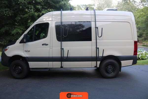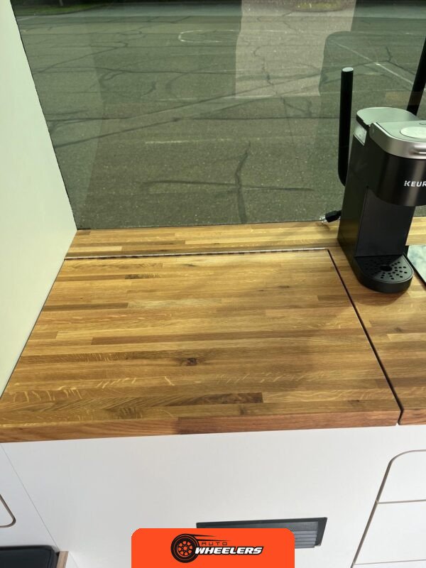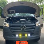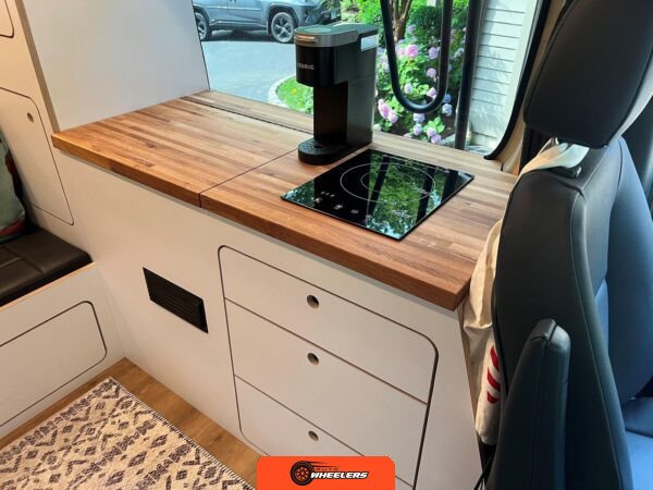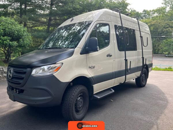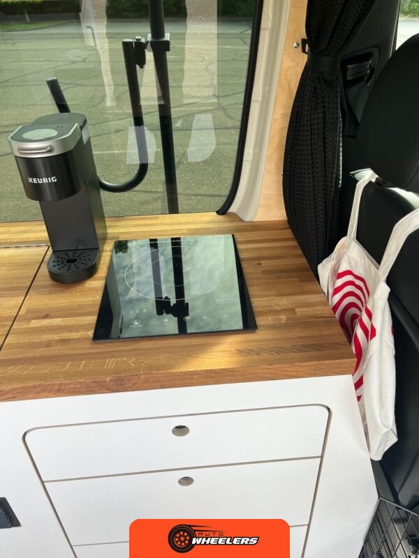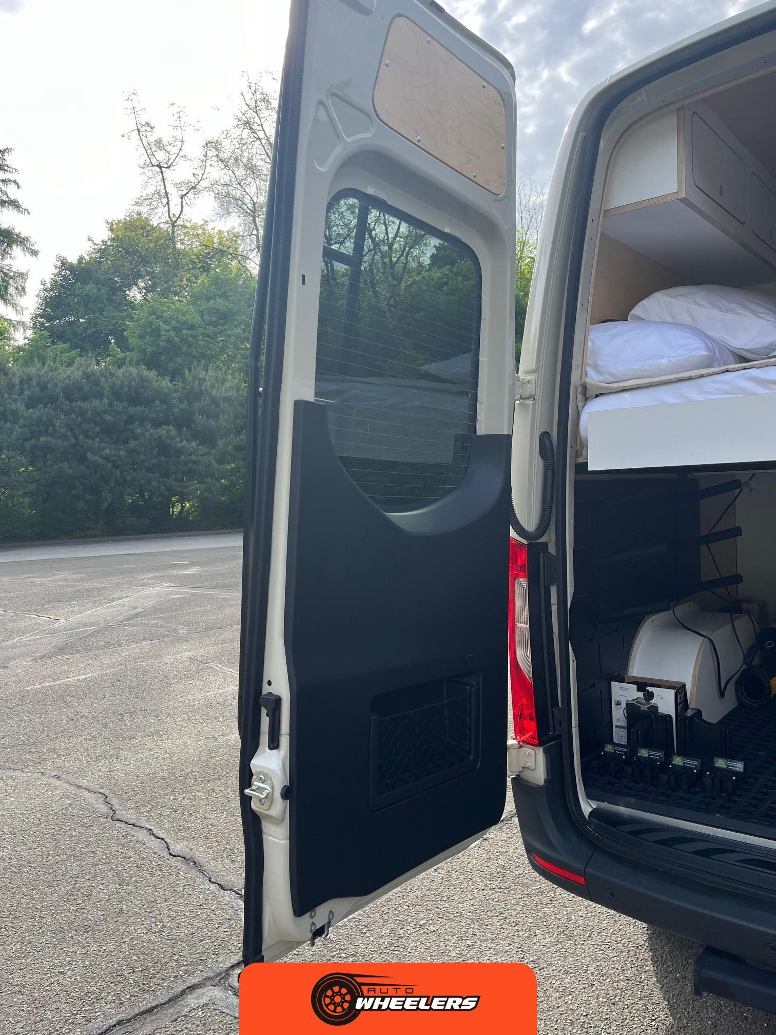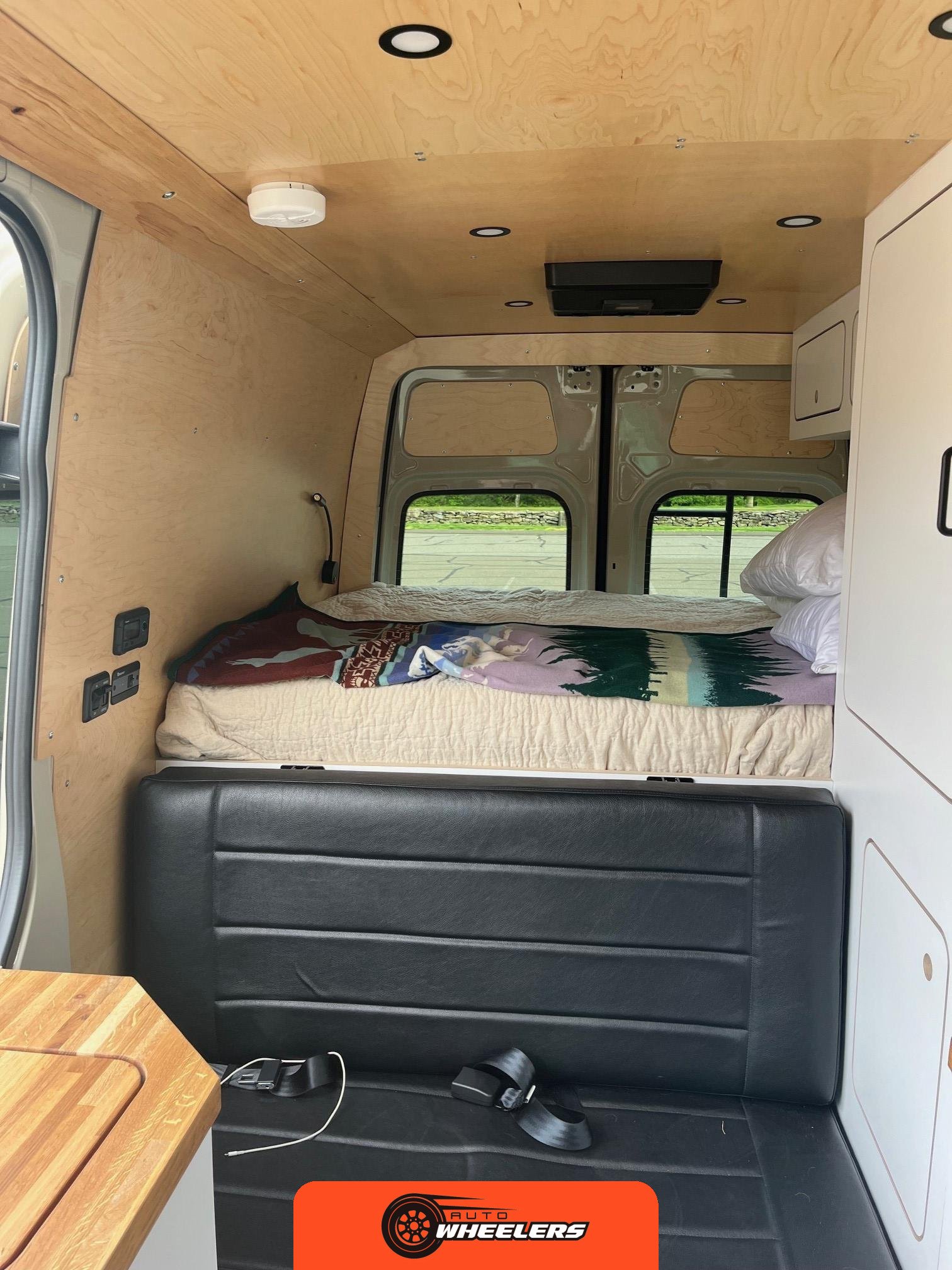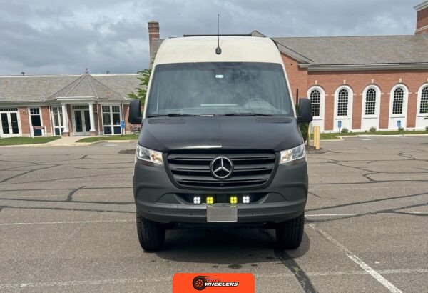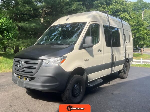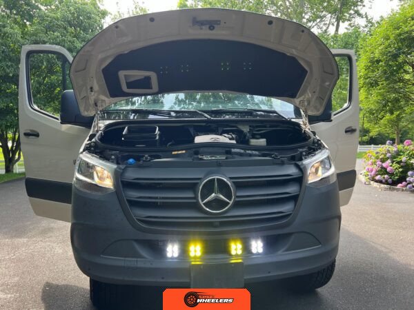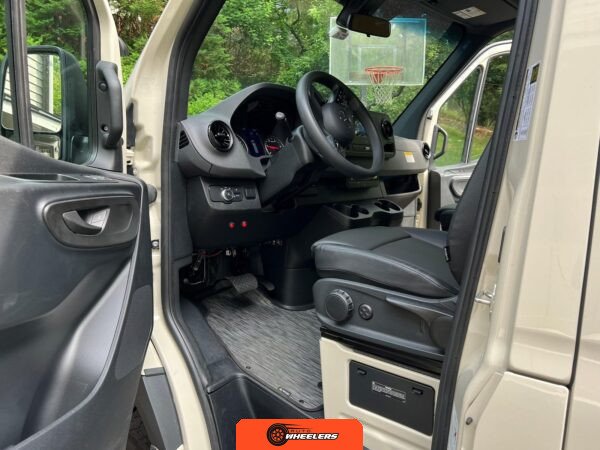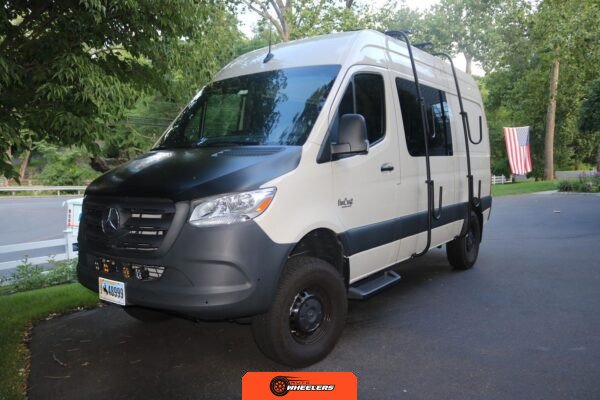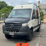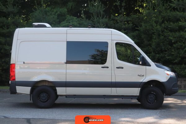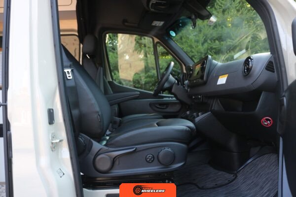 "7-inch touchscreen MBUX infotainment system", "hill-start assist technology", "blind spot monitoring system", "crosswind assist technology", "front and rear parking sensors", "360-degree camera", "four-season insulation package", "maple walls, ceilings, and door card trim", "white laminated birch cabinetry", "four overhead cabinets", "oak countertops", "pine corner boards", "weatherproof vinyl flooring", "steel bed and bench frames with two lap belts", "black leather bench cushions", "6-inch medium memory-foam bed", "black partition curtain", "Lagun table kit", "white garage cabinet kit", "air diesel heater", "rear roof vent fan", "Renogy 320-watt solar panel", "Renogy 2.4-kilowatt-hour smart-heated lithium package", "Renogy 3, 000-watt pure sine inverter", "two-stage overhead lighting with dimmer", "bedside reading light package", "stainless pressure-regulated electric sink", "45-quart refrigerator", "single-burner induction stove top", "swiveling passenger-side seat", "new cockpit carpet kit", "pegboard storage system", "garage T-Mat storage system", "Dometic RTX-2000 Off-Grid air conditioning system", "Renogy 400ah lithium smart self-heating battery upgrade", "outdoor hot water shower package", "LED lighting package", "tinted windows", "full set of window Reflectix" |