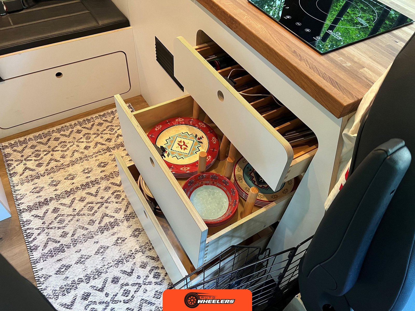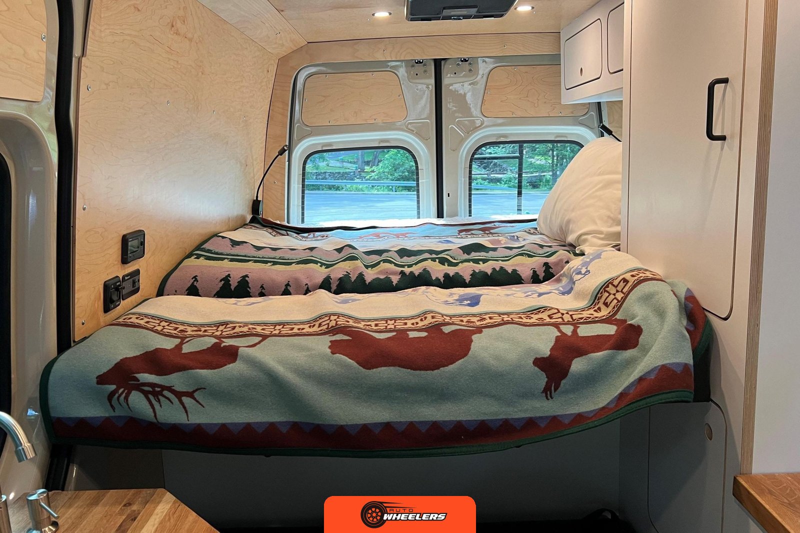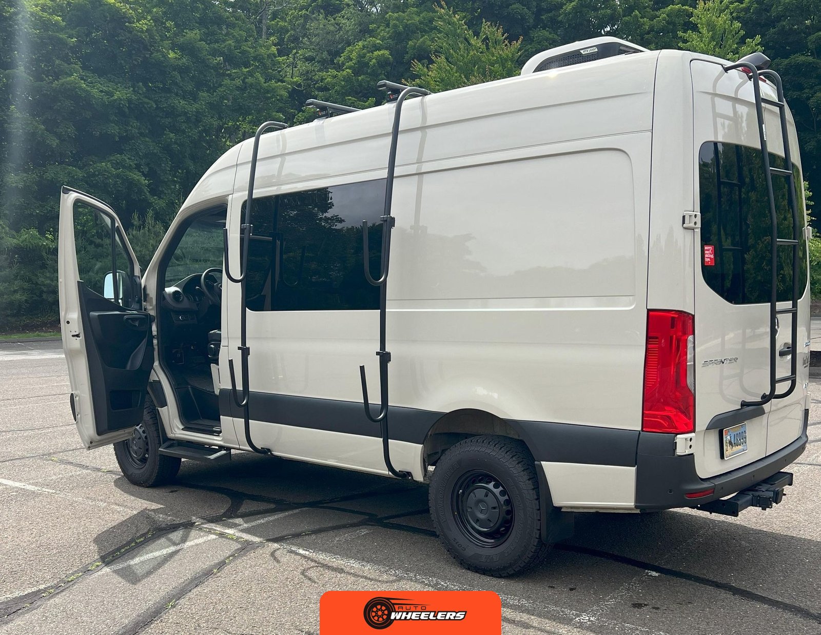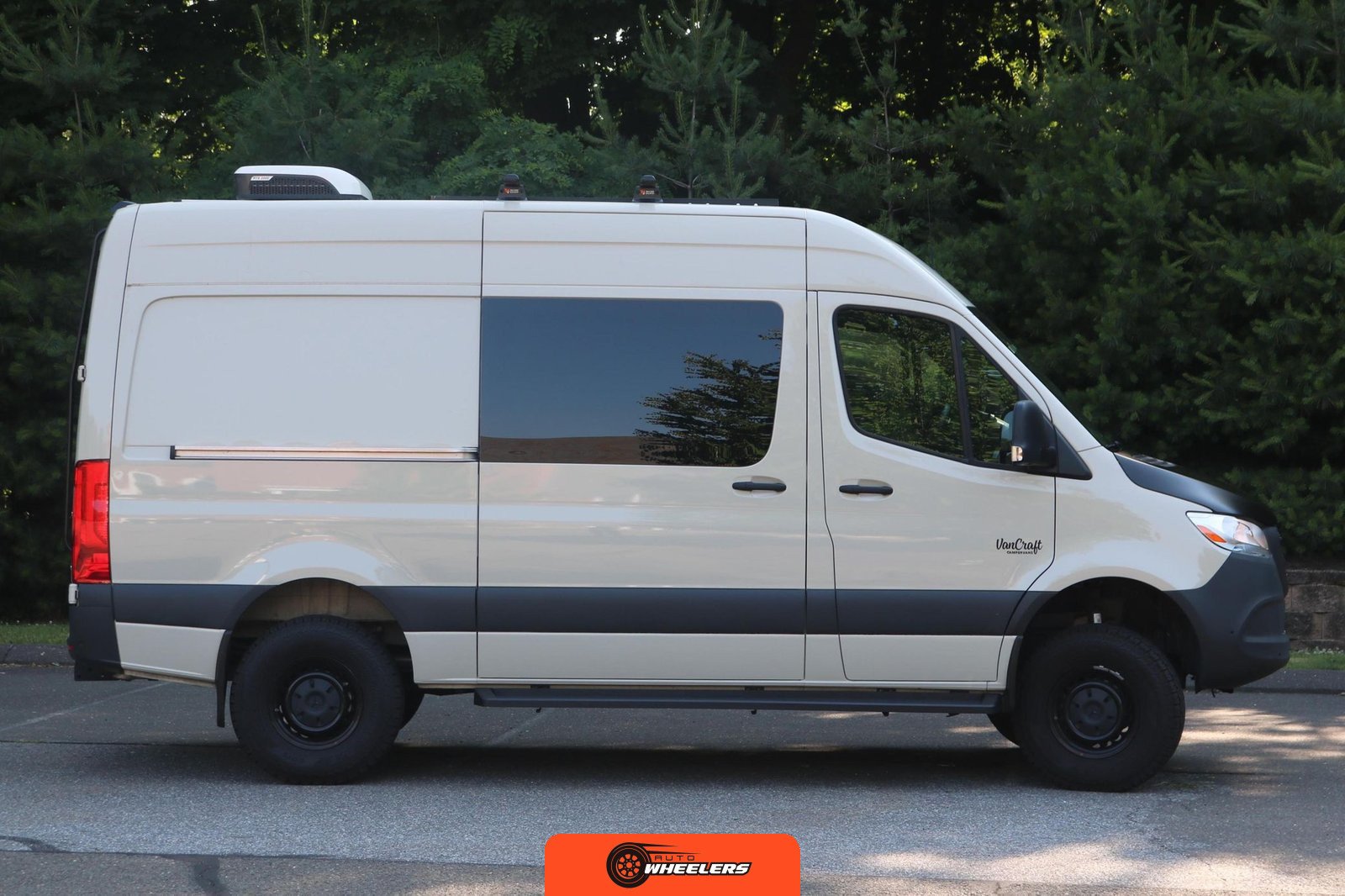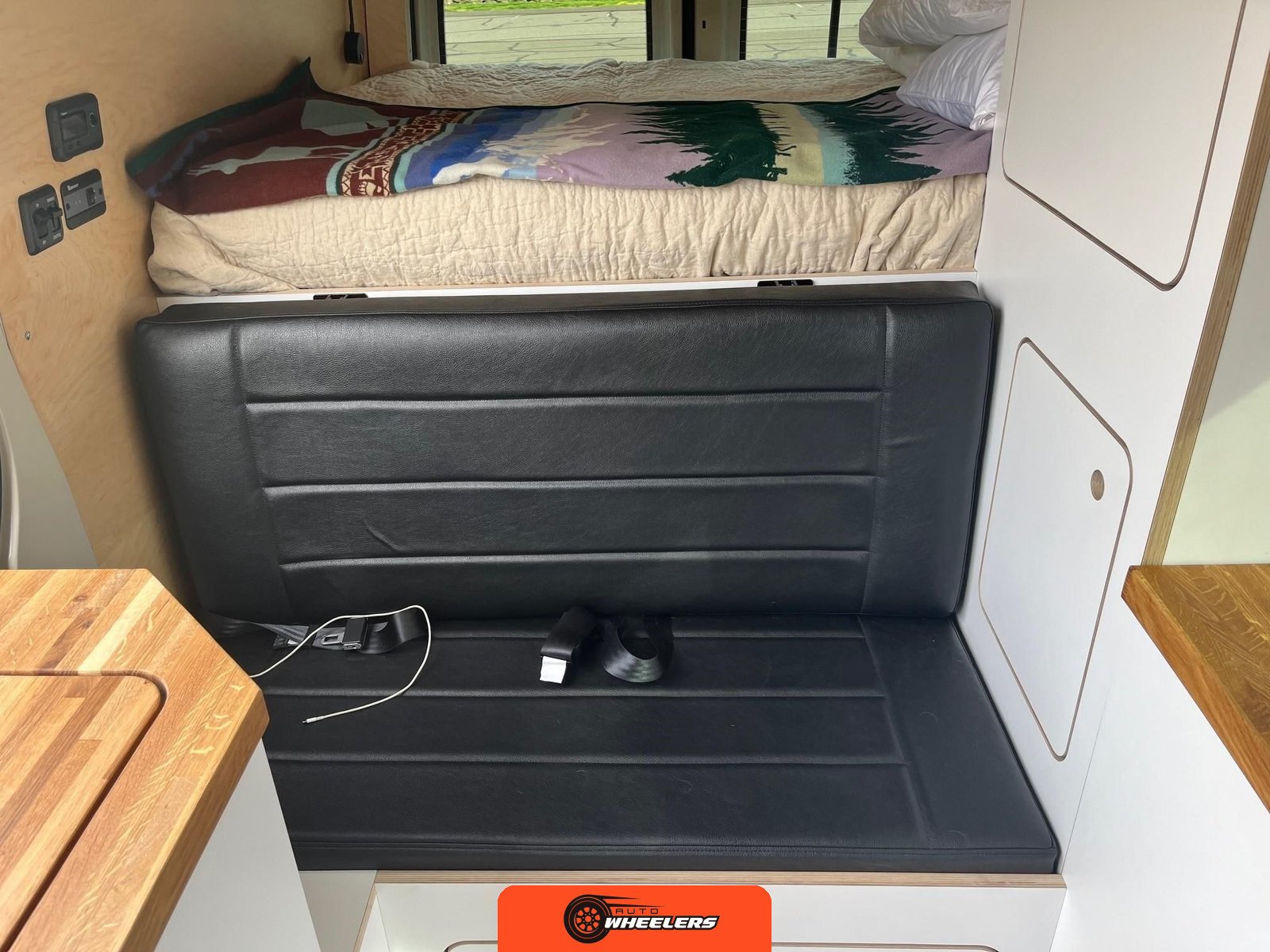 "7-inch touchscreen MBUX infotainment system", "hill-start assist technology", "blind spot monitoring system", "crosswind assist technology", "front and rear parking sensors", "360-degree camera", "four-season insulation package", "maple walls, ceilings, and door card trim", "white laminated birch cabinetry", "four overhead cabinets", "oak countertops", "pine corner boards", "weatherproof vinyl flooring", "steel bed and bench frames with two lap belts", "black leather bench cushions", "6-inch medium memory-foam bed", "black partition curtain", "Lagun table kit", "white garage cabinet kit", "air diesel heater", "rear roof vent fan", "Renogy 320-watt solar panel", "Renogy 2.4-kilowatt-hour smart-heated lithium package", "Renogy 3, 000-watt pure sine inverter", "two-stage overhead lighting with dimmer", "bedside reading light package", "stainless pressure-regulated electric sink", "45-quart refrigerator", "single-burner induction stove top", "swiveling passenger-side seat", "new cockpit carpet kit", "pegboard storage system", "garage T-Mat storage system", "Dometic RTX-2000 Off-Grid air conditioning system", "Renogy 400ah lithium smart self-heating battery upgrade", "outdoor hot water shower package", "LED lighting package", "tinted windows", "full set of window Reflectix" |