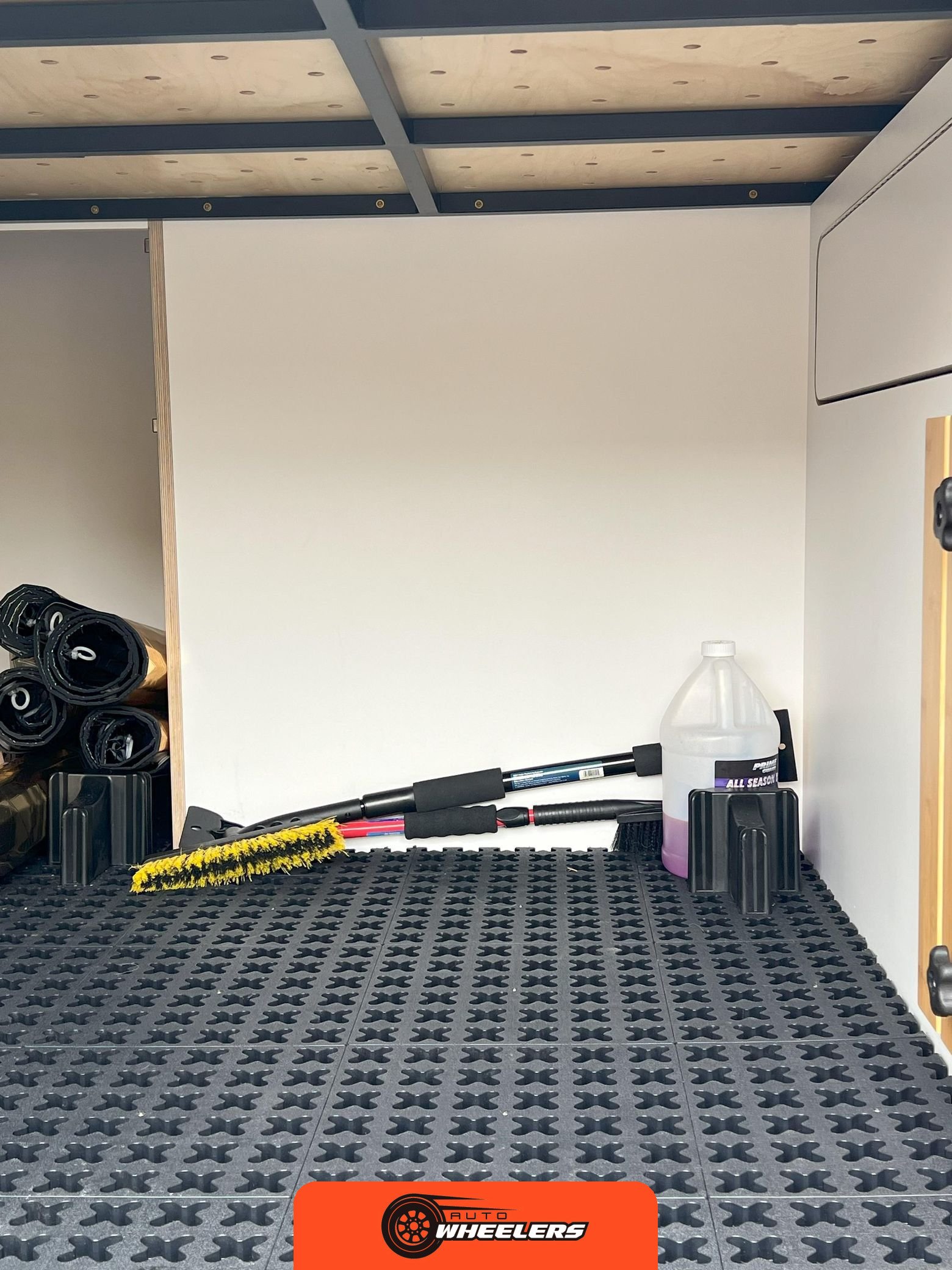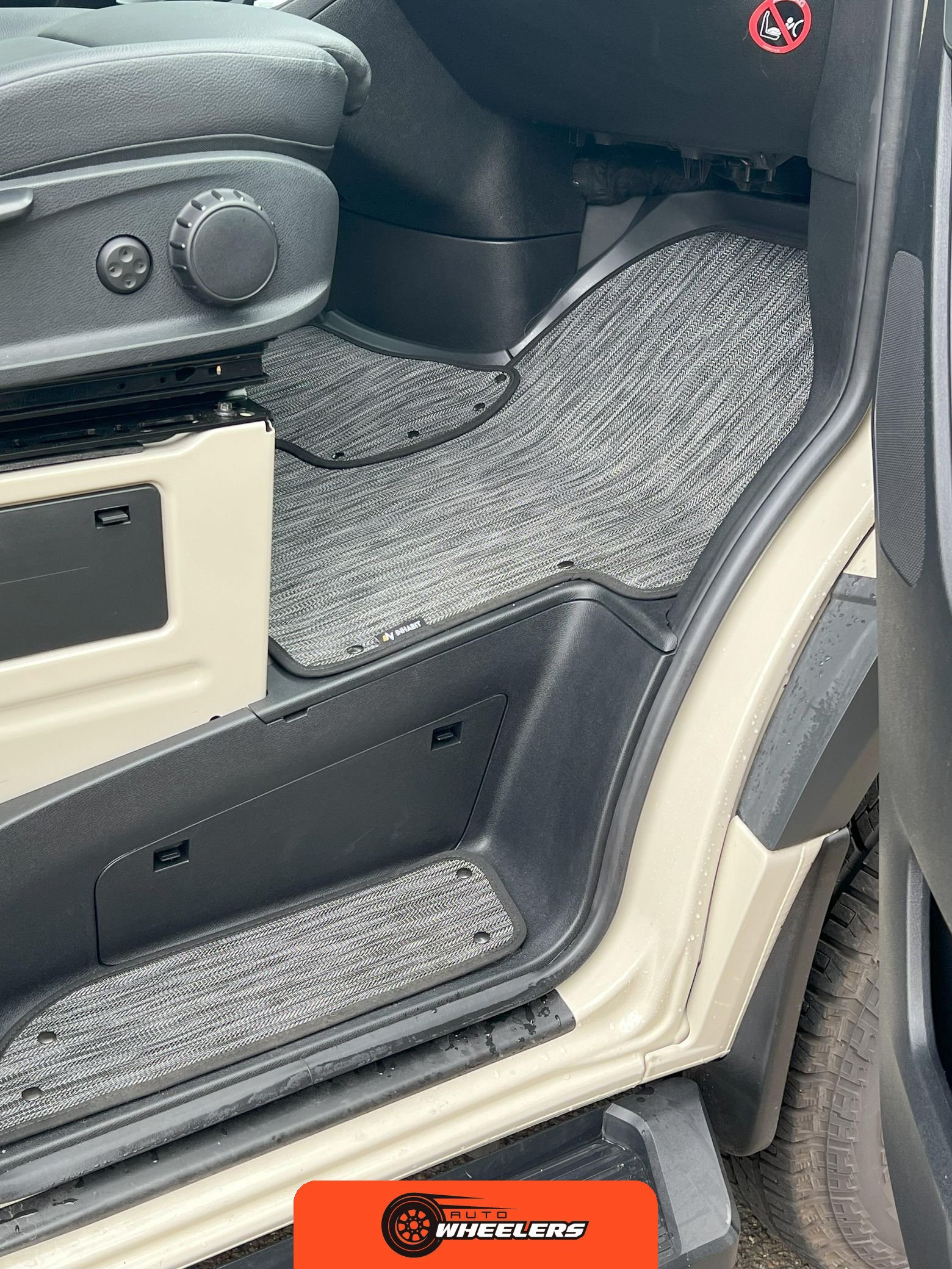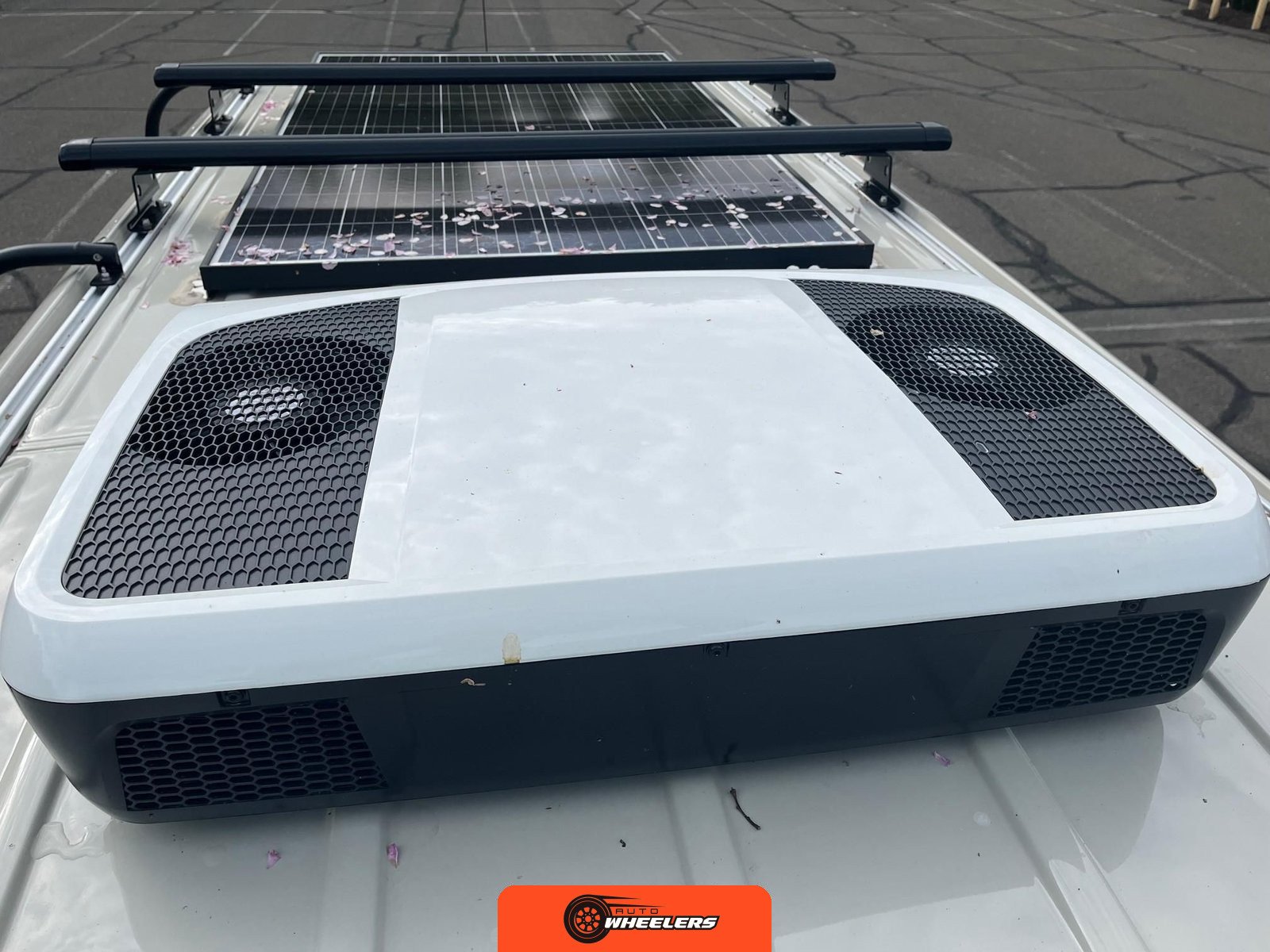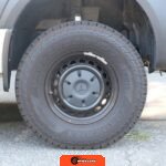 "16-inch steel wheels", "trailer hitch", "power-folding door mirrors", "running boards", "two-tone off-road light pod kit", "universal roof C-track mounting rails", "3M matte black hood wrap", "black rear-door steel ladder", "black powder-coated wheels", "32-inch all-terrain tires", "surfboard rack", "roof rack" |