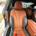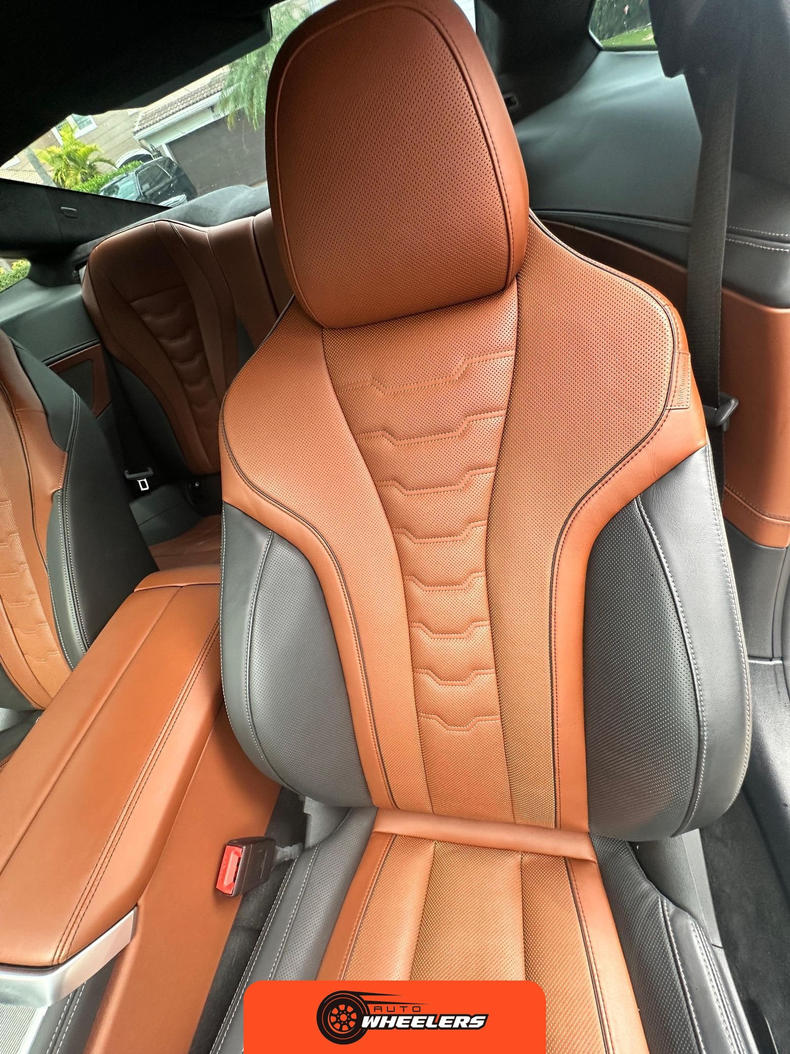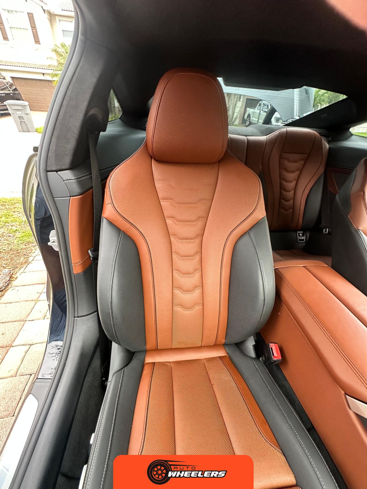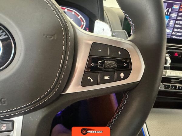 The interior showcases a dual-tone Tartufo and black color scheme with an Alcantara headliner. Seating surfaces feature both heating and ventilation functionality in the front positions. The Front Heat Comfort Package adds heated armrests and a heated steering wheel. Soft-close door technology is present throughout. The cabin layout follows BMW’s driver-focused design philosophy with contemporary digital interfaces and premium materials consistent with the 8 Series positioning.