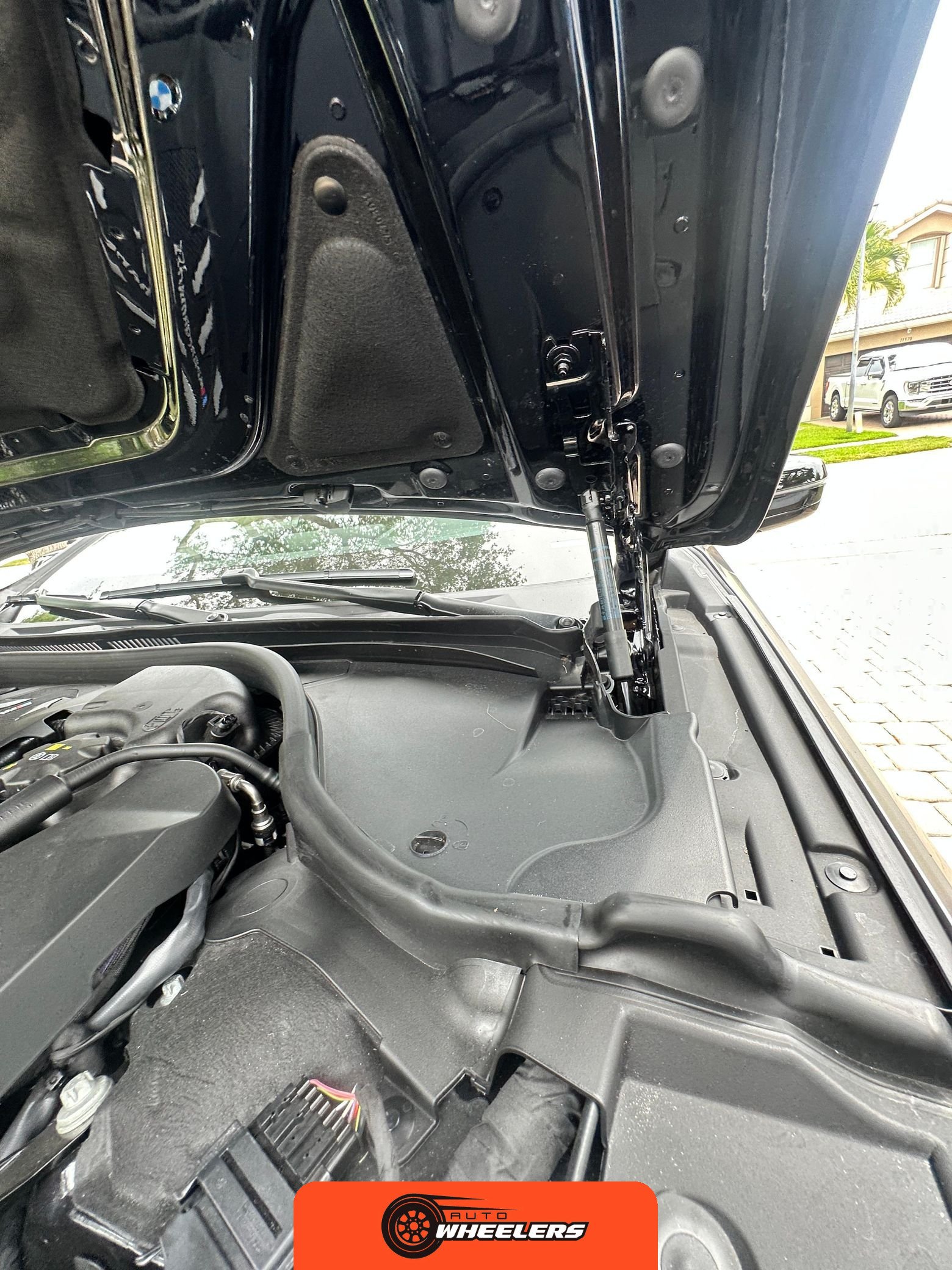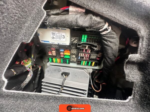 The Driving Assistance Package includes parking assistant plus, active blindspot detection, active park distance control, and a 3D surround view camera system. These technologies support maneuvering and situational awareness during operation. The post-repossession inspection noted the presence of two key fobs, owner’s manuals, and the original factory exhaust resonator that was removed during modification.